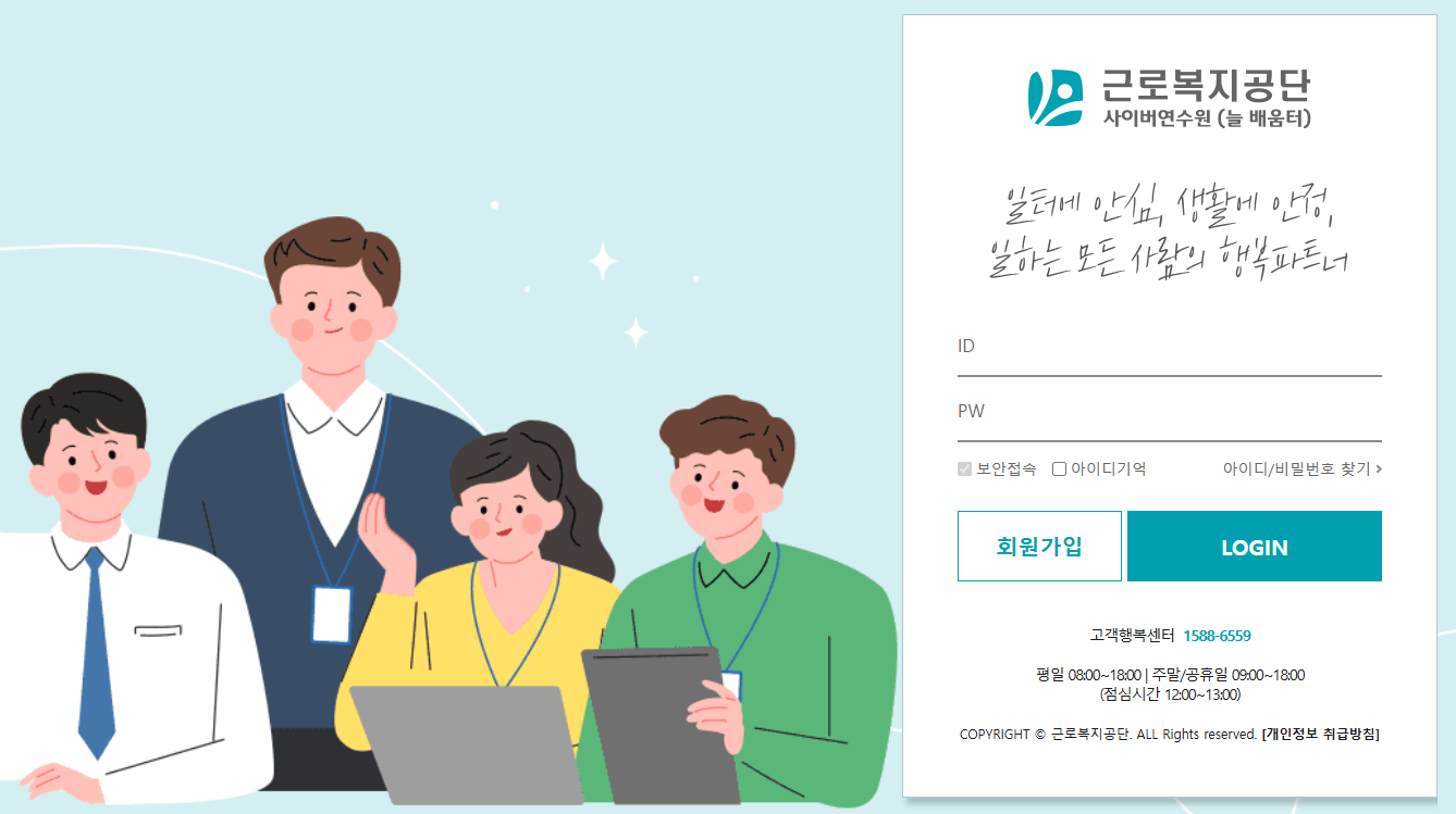 근로복지공단 사이버 연수원 홈페이지