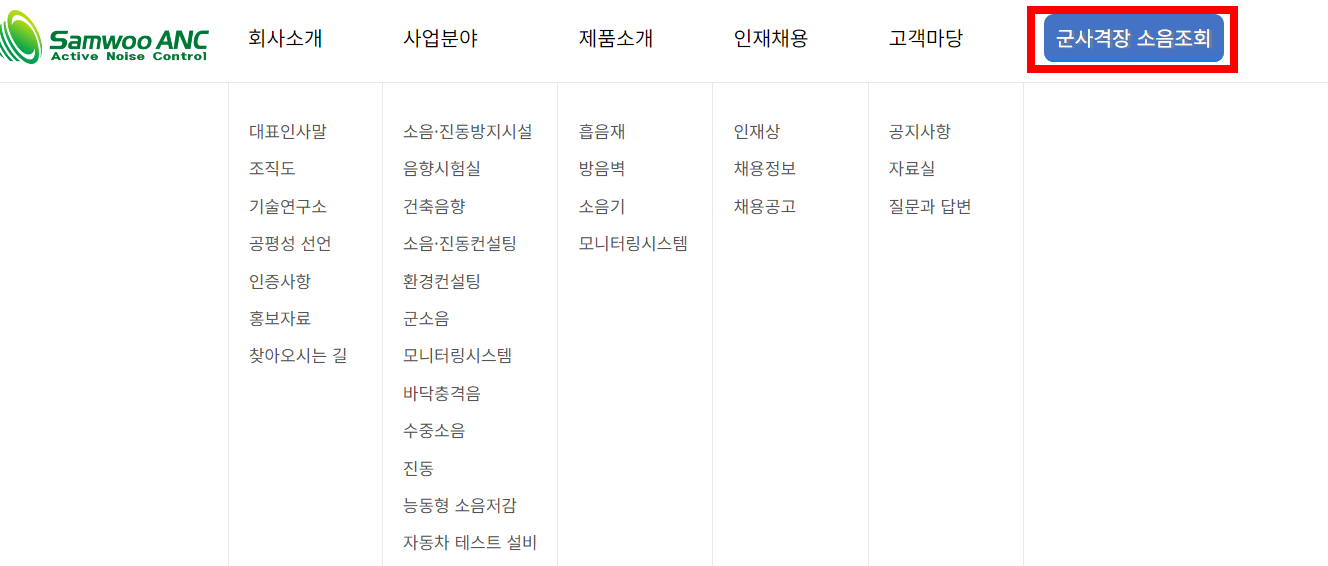 군사격장 소음지역 조회 시스템 홈페이지는 Samwoo ANC에서 조회가 가능합니다. 주소는 (https://kmnoise.samwooanc.com/)입니다. 홈페이지 접속 후 오른쪽 상단 군사격장 소음조회를 클릭하면 쉽게 대상 여부를 확인할 수 있습니다.