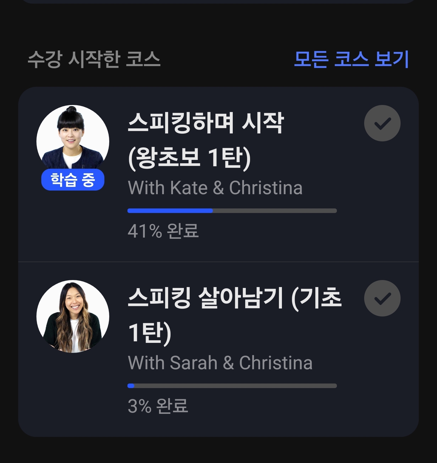 스픽의 학습 커리큘럼은 개별 맞춤형으로 구성되어 있어 부족한 부분을 집중적으로 보완할 수 있습니다.