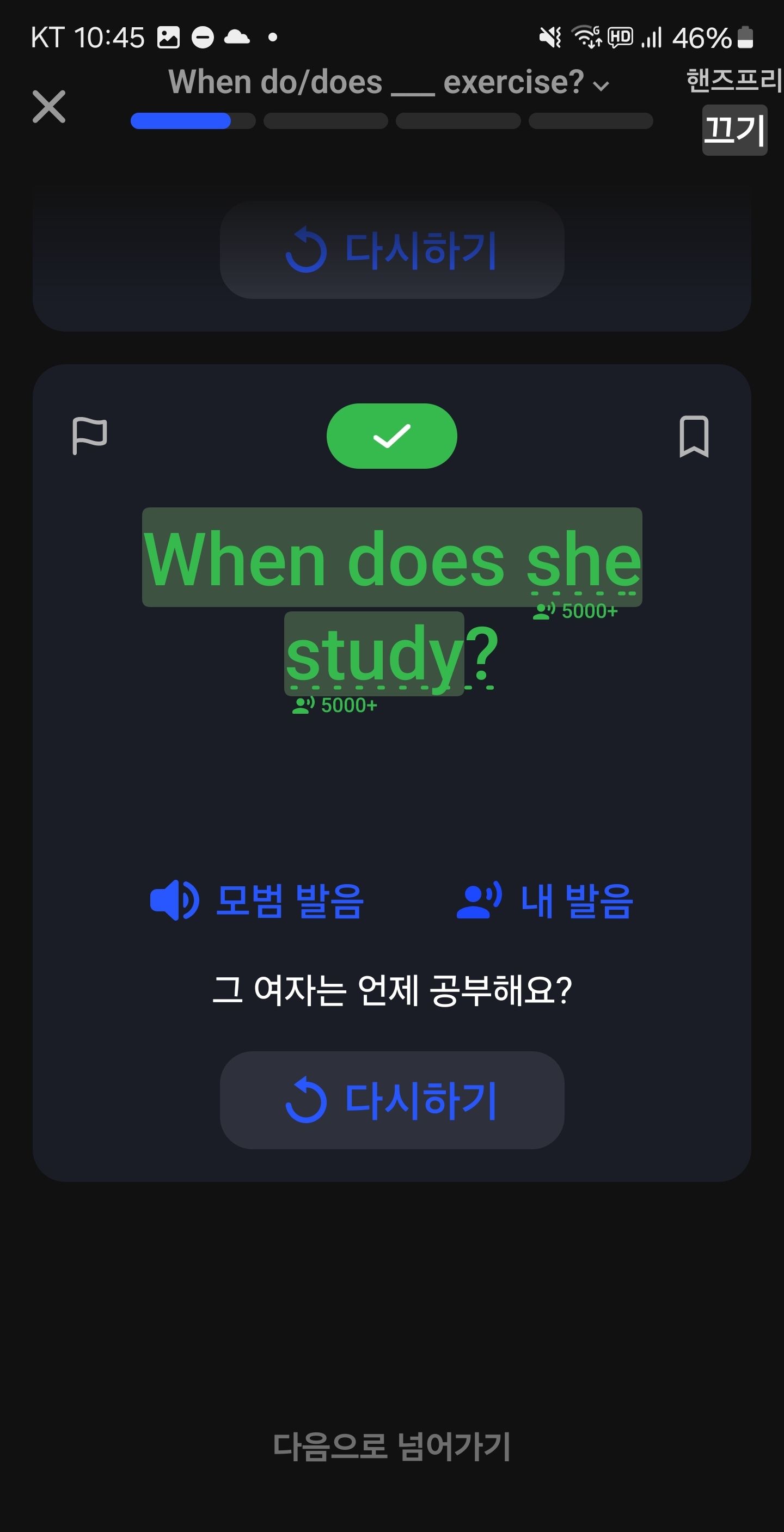 특히, 스스로 소리를 내어 말해야 학습이 진행되는 방식이기 때문에 강제적으로 연습할 수밖에 없는 구조입니다.