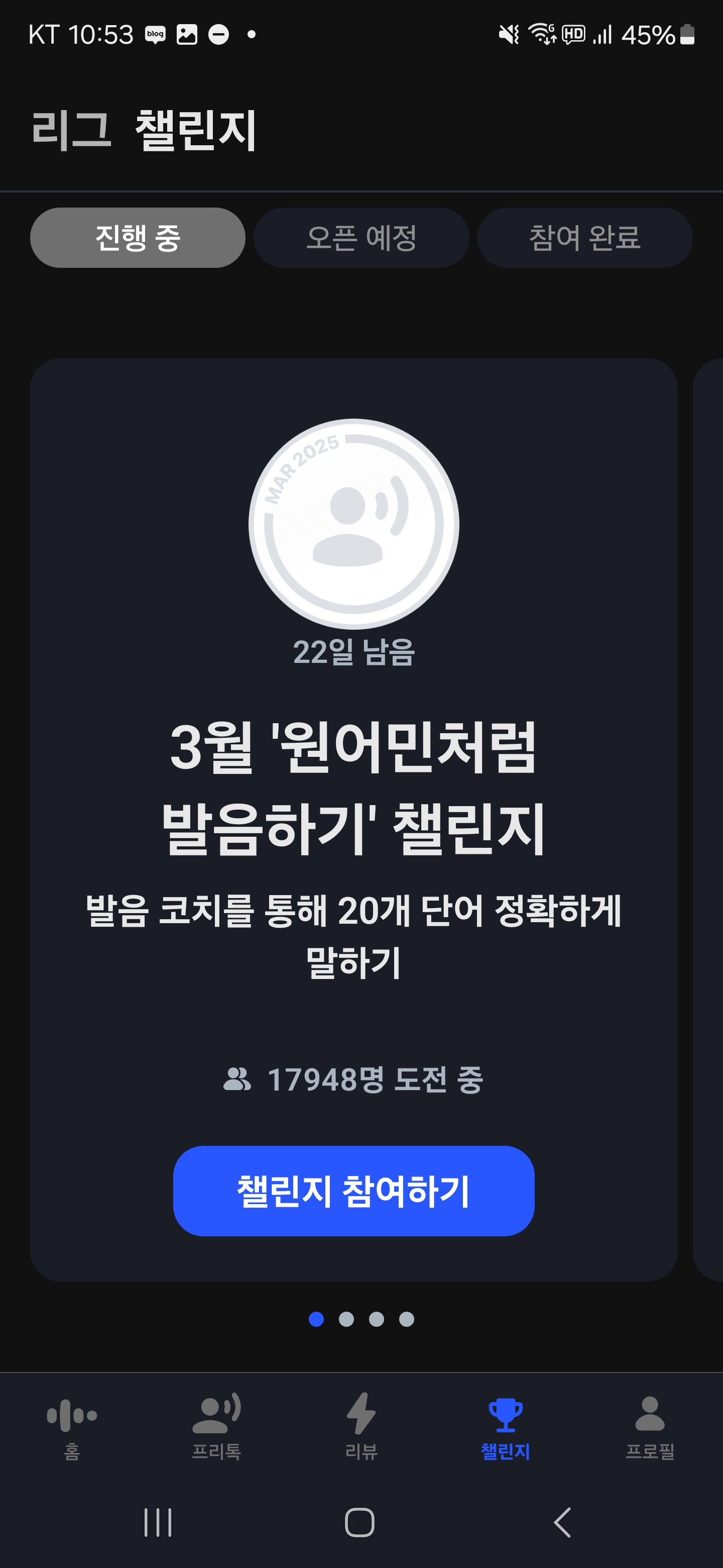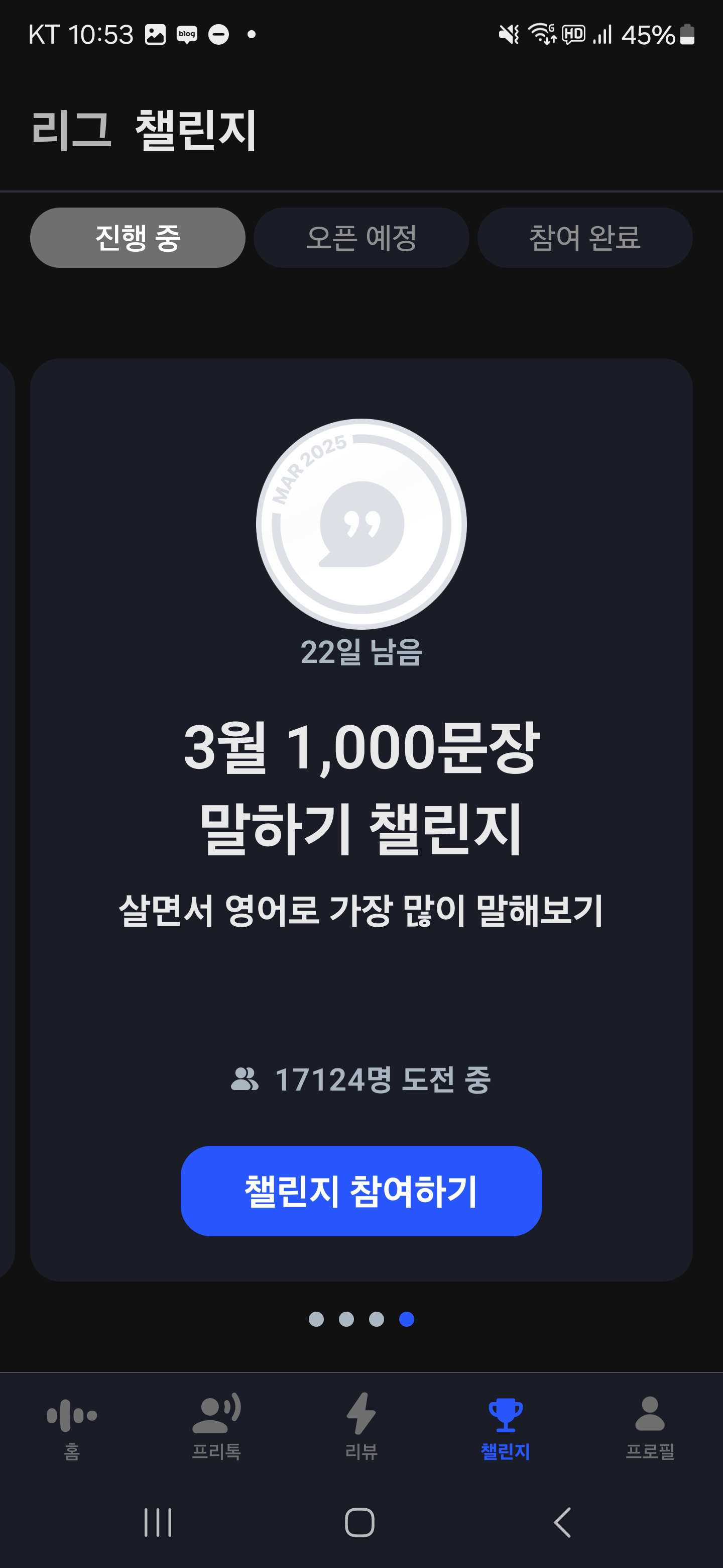 스픽에서는 사용자의 학습 의욕을 높이기 위해 다양한 챌린지 이벤트를 운영 합니다.