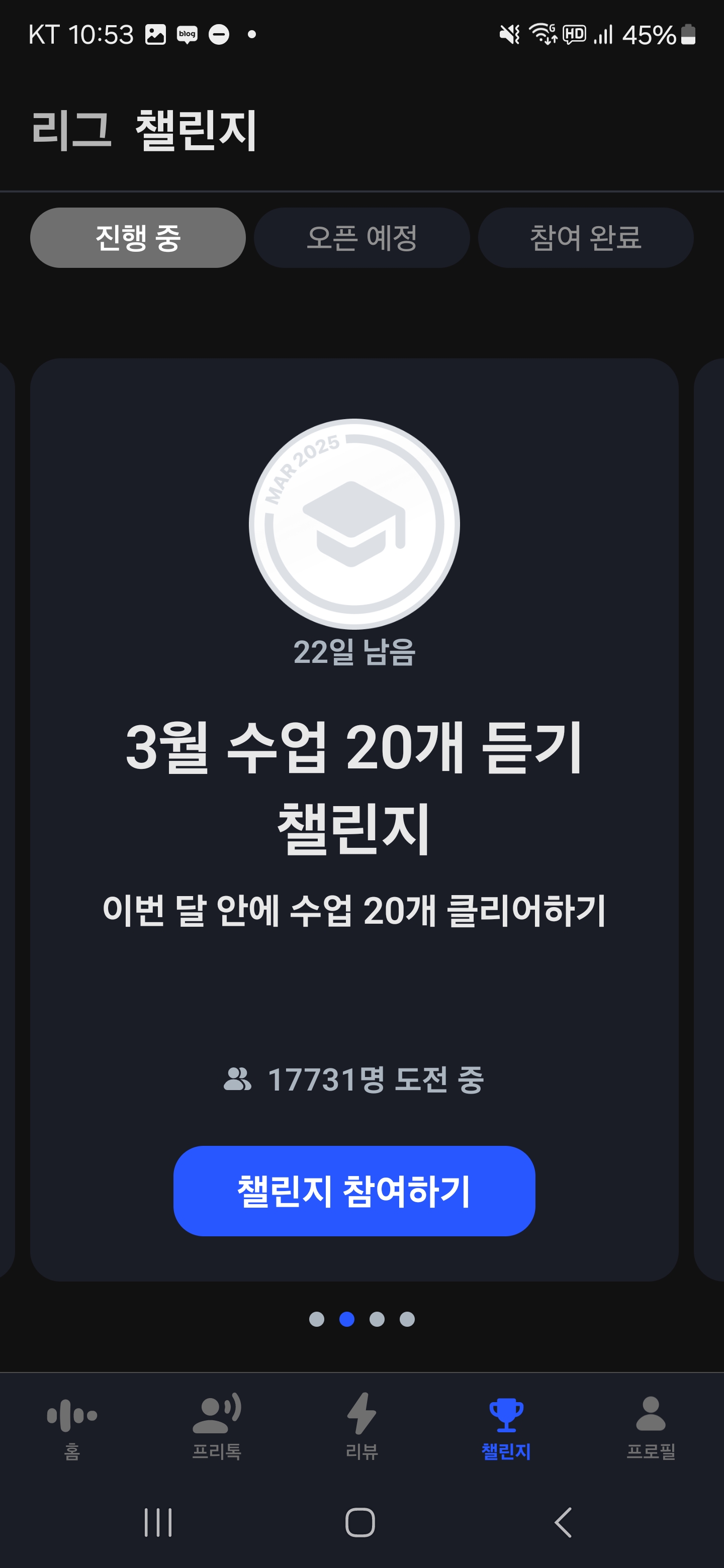 - 챌린지 이벤트로 보상 제공 및 학습 동기 부여