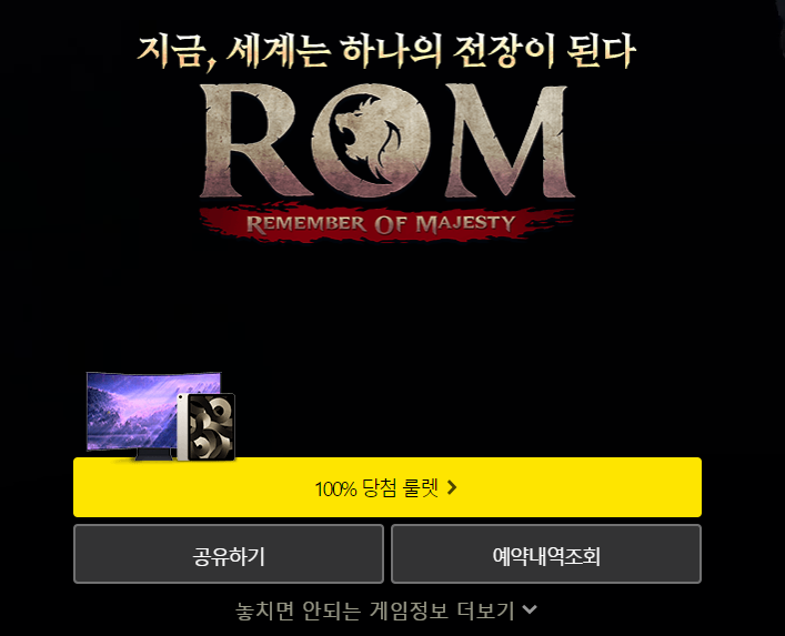 롬 사전예약 신청하고 100% 당첨 룰렛 아이패드 및 아이템 보상받기