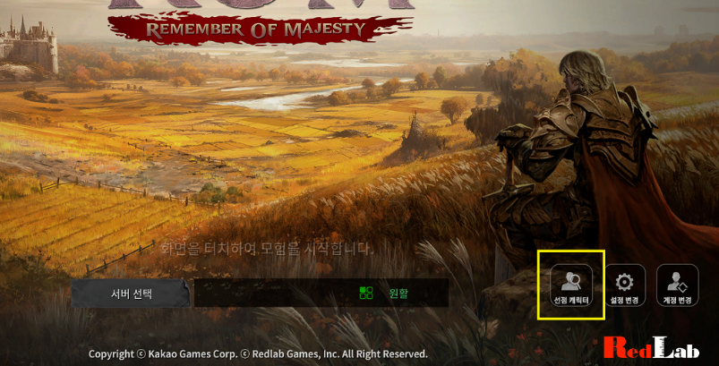 1. 롬 PC클라이언트 혹은 게임 앱 실행 이후 로그인 시, 우하단에 노출되는 선점 캐릭터 버튼을 클릭