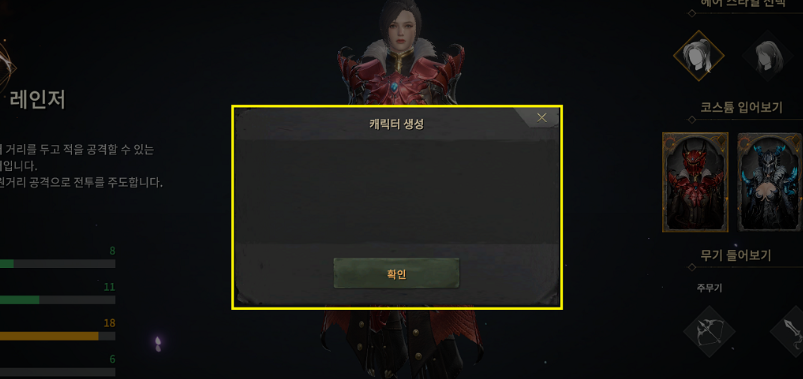 5. 선점했던 캐릭터명이 팝업 영역에 노출되며 확인 버튼을 통해 캐릭터 생성 완료