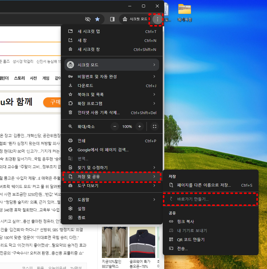 우선 크롬방식이며, 엣지도 이와 같은 방법으로 이용이 가능합니다. 그럼 만드는 방법은 아래와 같습니다.