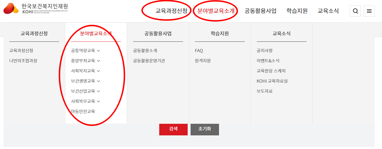 - 전문교육:각 직종별로 필요한 전문 지식 및 기술 습득을 위한 교육 과정을 제공합니다. 이러한 교육은 KOHI e-러닝 시스템을 통해 제공되며, 시간과 장소에 구애받지 않고 수강할 수 있습니다.