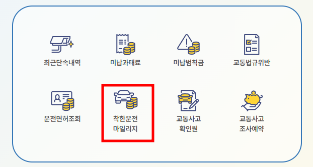 - 홈페이지 왼쪽 착한 운전 마일리지를 클릭합니다.