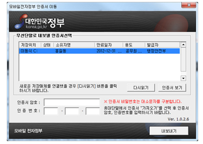 모바일 인증서이동 서비스 바로가기 (mobile.go.kr)