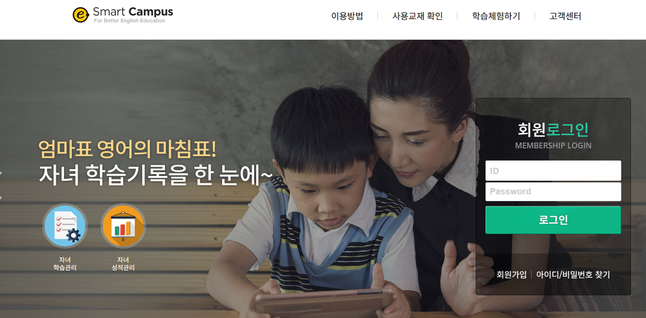 홈페이지 바로가기 주소는 www.esmartcampus.co.kr입니다. 선생님은 학생 관리, 반 관리, 학습 관리, 성적표를 관리할 수 있습니다. 소속 학생의 경우 교재 맞춤형 학습을 진행할 수 있습니다. 또한 학부모의 경우 자녀의 학습/시험/성적을 확인이 가능합니다.